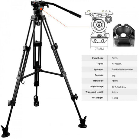 E-Image EG03AA Cabezal Fluido GH03 + Trípode AT7402A